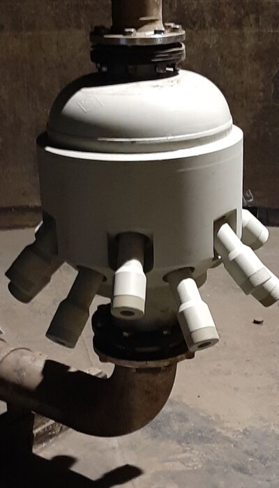 Die Lieferung umfasste 3 zwölfstrahlige Ejektoren zur vollständigen Durchmischung und flächendeckenden Belüftung der 3 Nitrifikationsbecken. Die Ejektoren sorgen nun nicht nur für eine feinblasige Belüftung mit optimaler Sauerstoffausnutzung, sondern auch für ein komplettes in Schwebe halten der zum Schmutzfrachtabbau benötigten Biomasse. Hierdurch werden Ablagerungen am Beckenboden zuverlässig verhindert.
