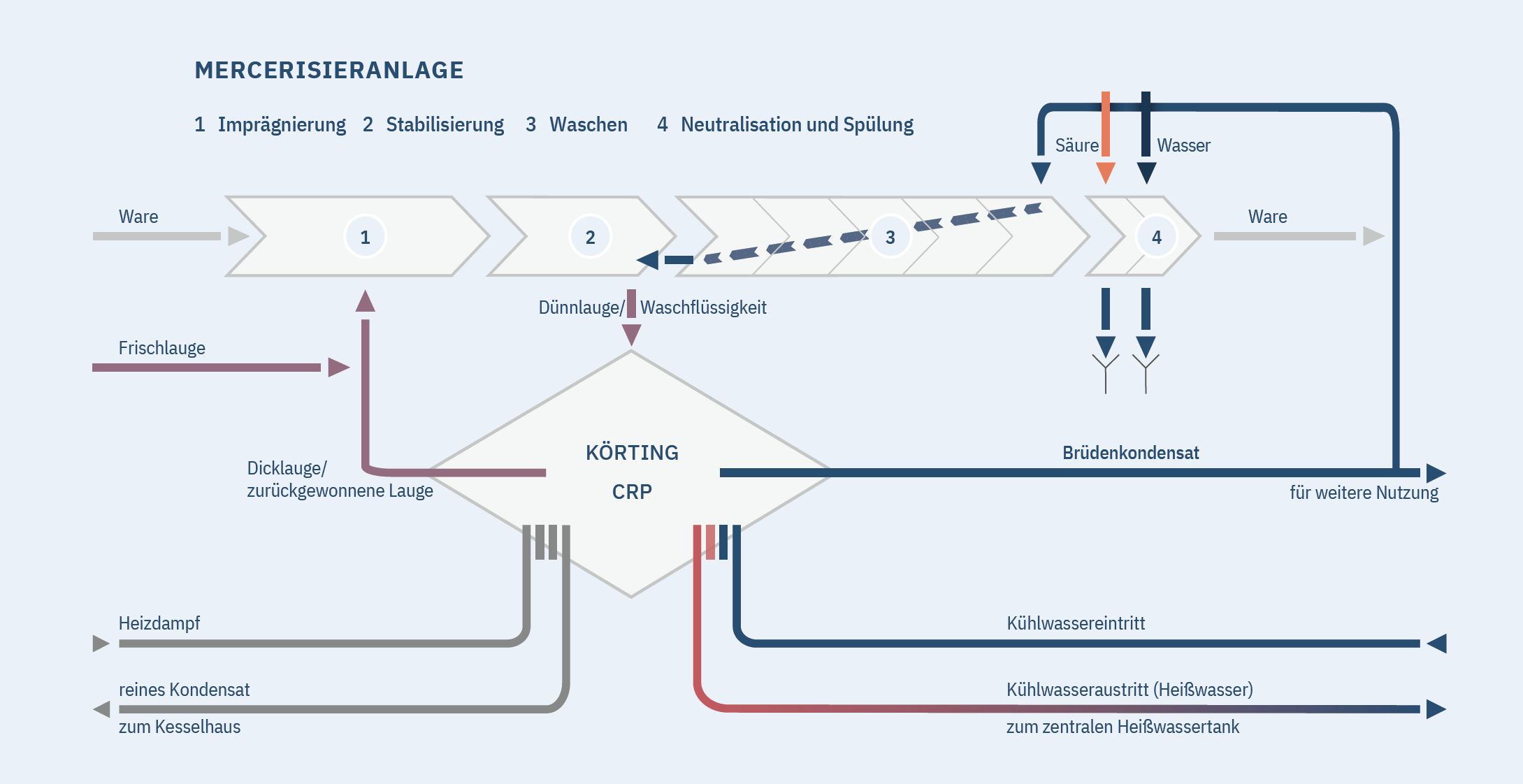 Mit der Lieferung von zwei Laugenrückewinnungsanlagen (Caustic Recovery Plants / CRP) realisiert Körting seinen bislang größten Einzelauftrag für die Textilindustrie. Bis zu 14.000 Liter Lauge pro Stunde für Denim und 30.000 Liter Lauge pro Stunde für weiße Ware können hiermit verarbeitet werden.