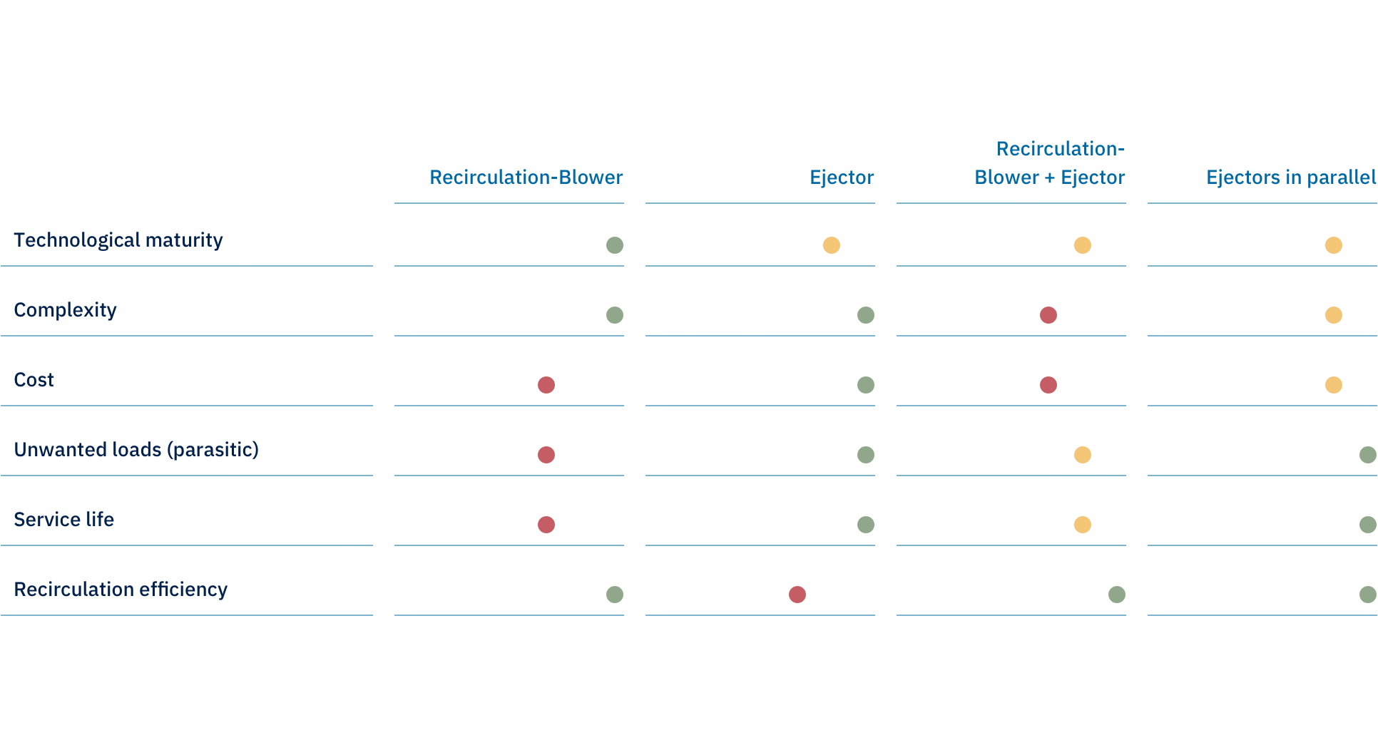 • Ejector usage reduces total hydrogen volume to small amounts compared to the conventional hydrogenation concept.